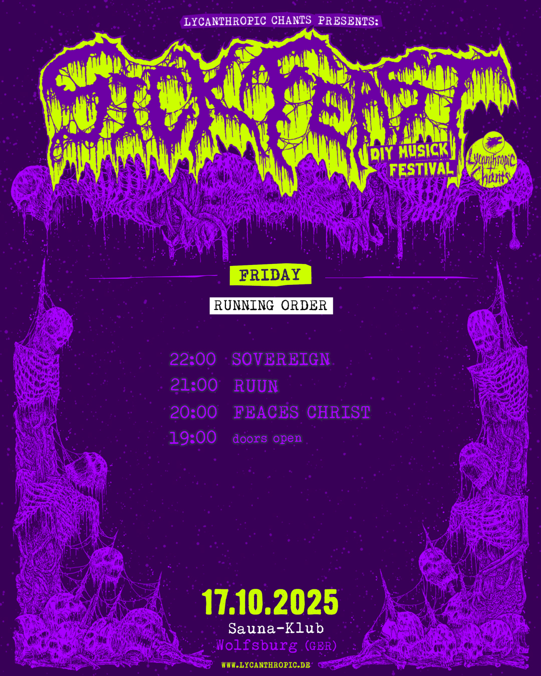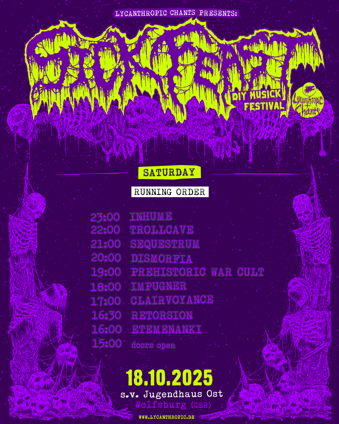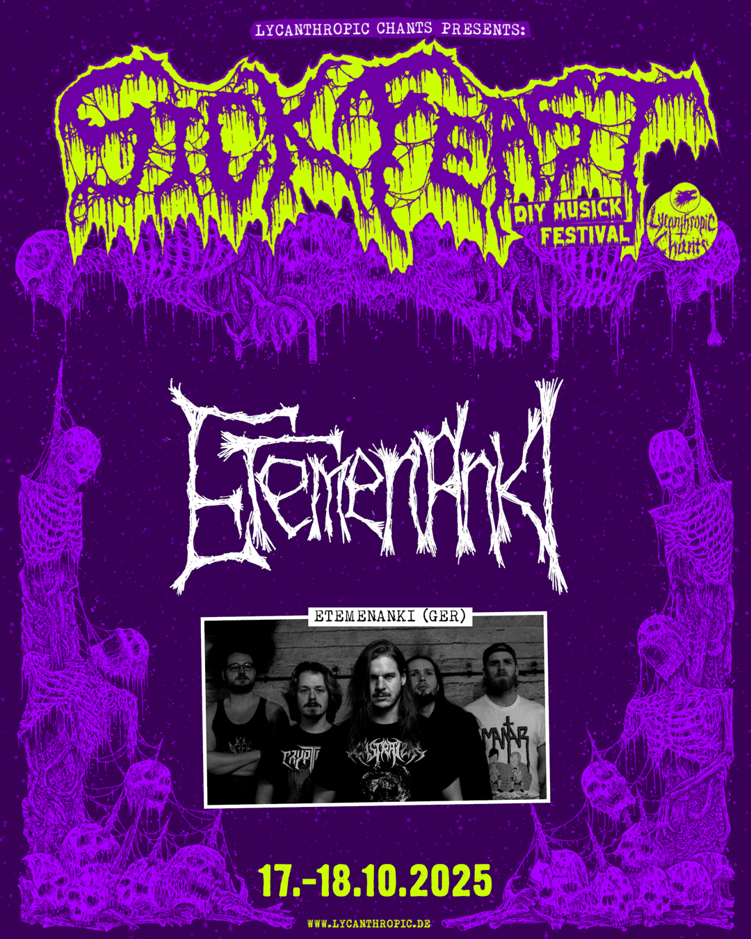 Before diving deeper into the schedule for the Sick Feast 2025 Saturday, please welcome one more addition to the program: ETEMENANKI are a new band from our area with just one demo released on Miad Tapes. Their take on Death Metal is something you don’t hear very often from bands and we thought this is something you should check out. They gonna open up our celebration of extreme underground musick with a short set and present that demo to you.