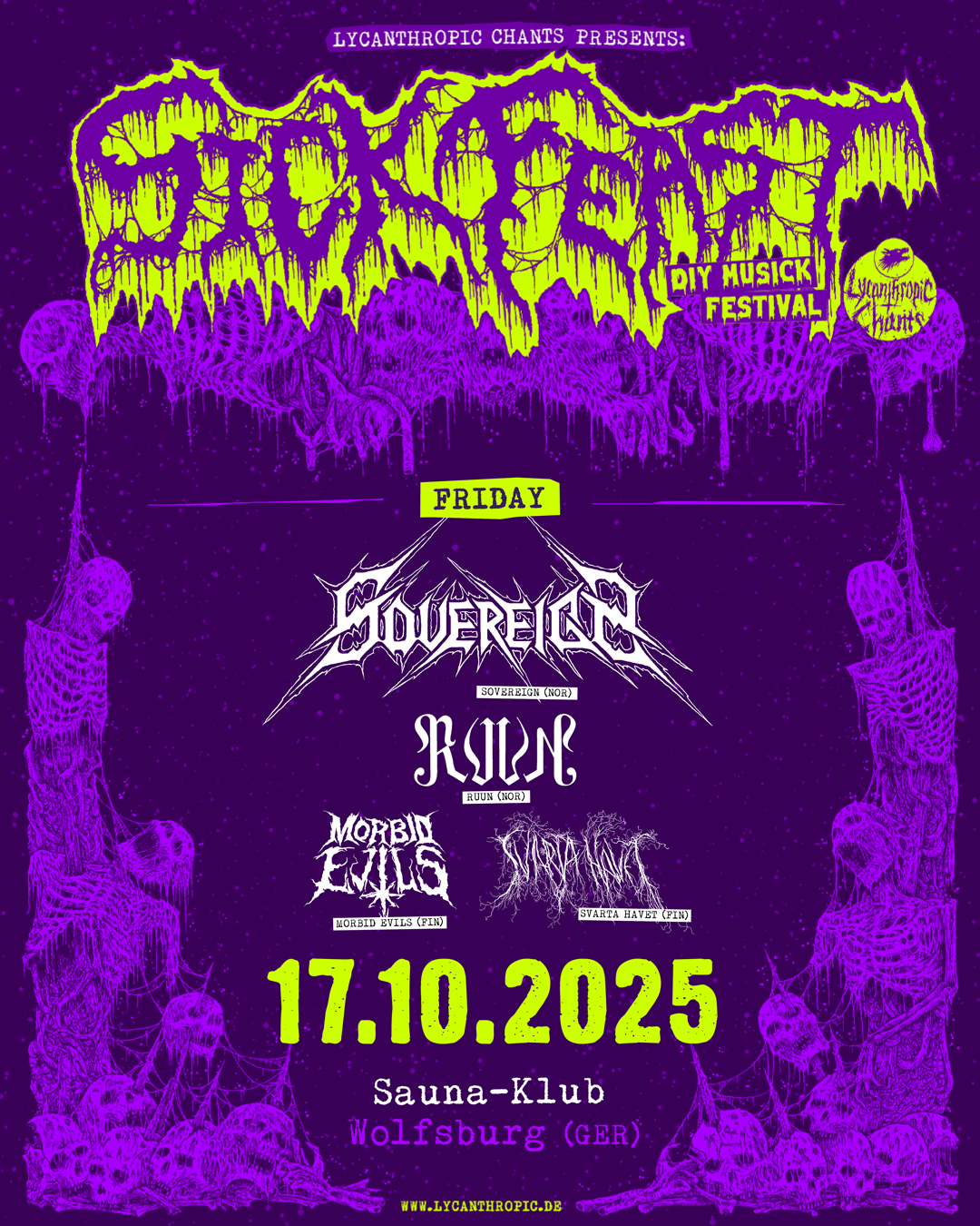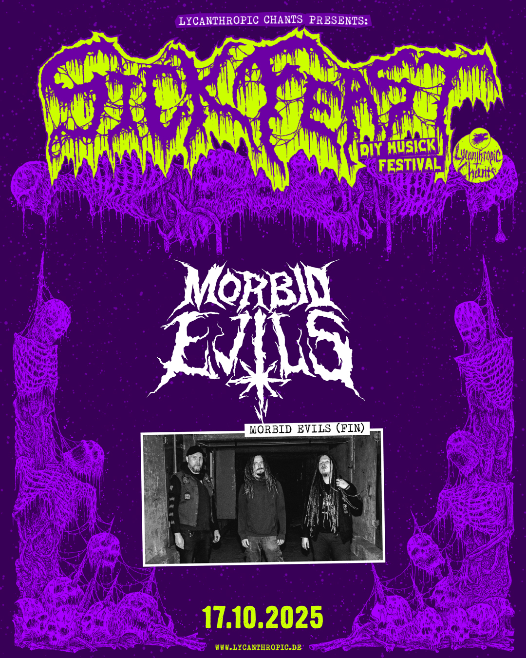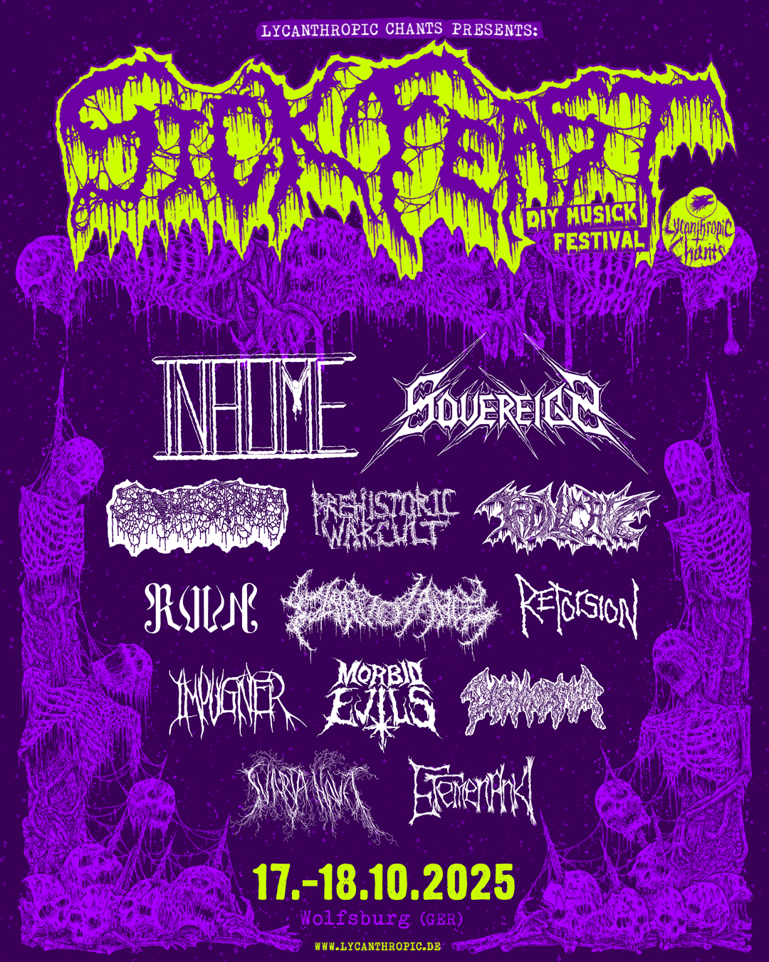 Let’s celebrate extreme underground musick at Sick Feast 2025. Lycanthropic Chants will present an ugly composition of madness that reeks of death’s breath in Wolfsburg (Germany) at s.v Jugendhaus Ost on 18th October 2025. And everyone who can’t get enough gore spilled is invited to join the warm-up show in Wolfsburg at Sauna-Klub the day before, 17th October 2025.